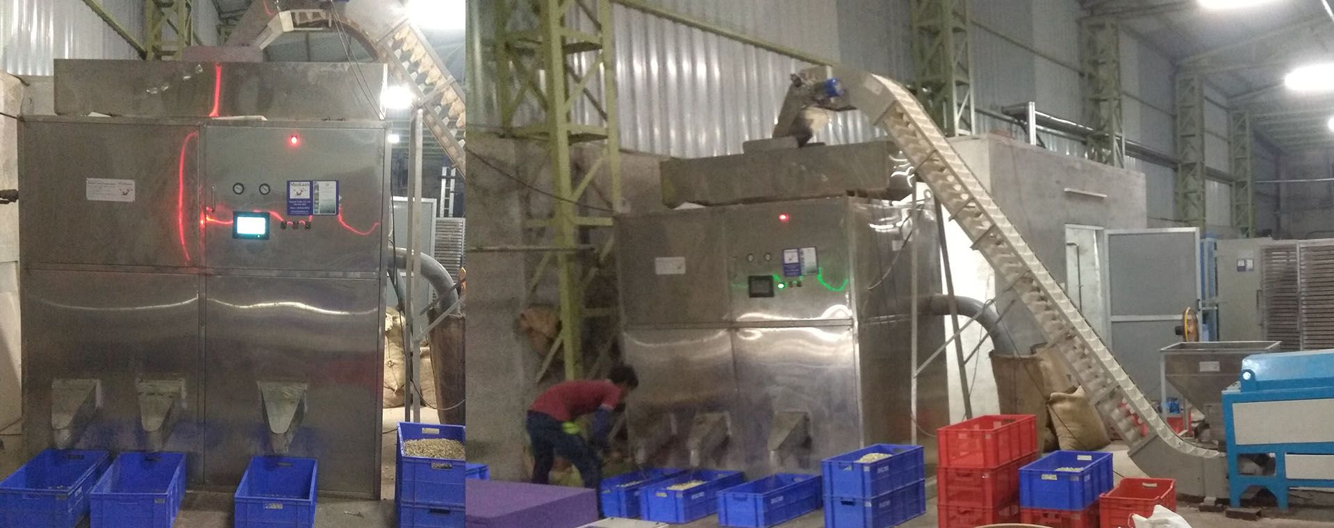 One of the most critical and sensitive equipment in cashew processing technology, handling fragile kernel with delicacy. Kernel fed into this machine are out of its natural protection of shells. Peeling operations is remove testa the red color skin clinched to kernel. Its usually a tricky operation due to the fact that the nut itself is a kidney shaped nut, thus making it difficult to reach out to inner sides of kernel to remove testa. Nonetheless, Muskaan peeling machines are designed to met this challenge. Our peeling machines deliver high amounts of peeled nuts with least amount of broken kernel.