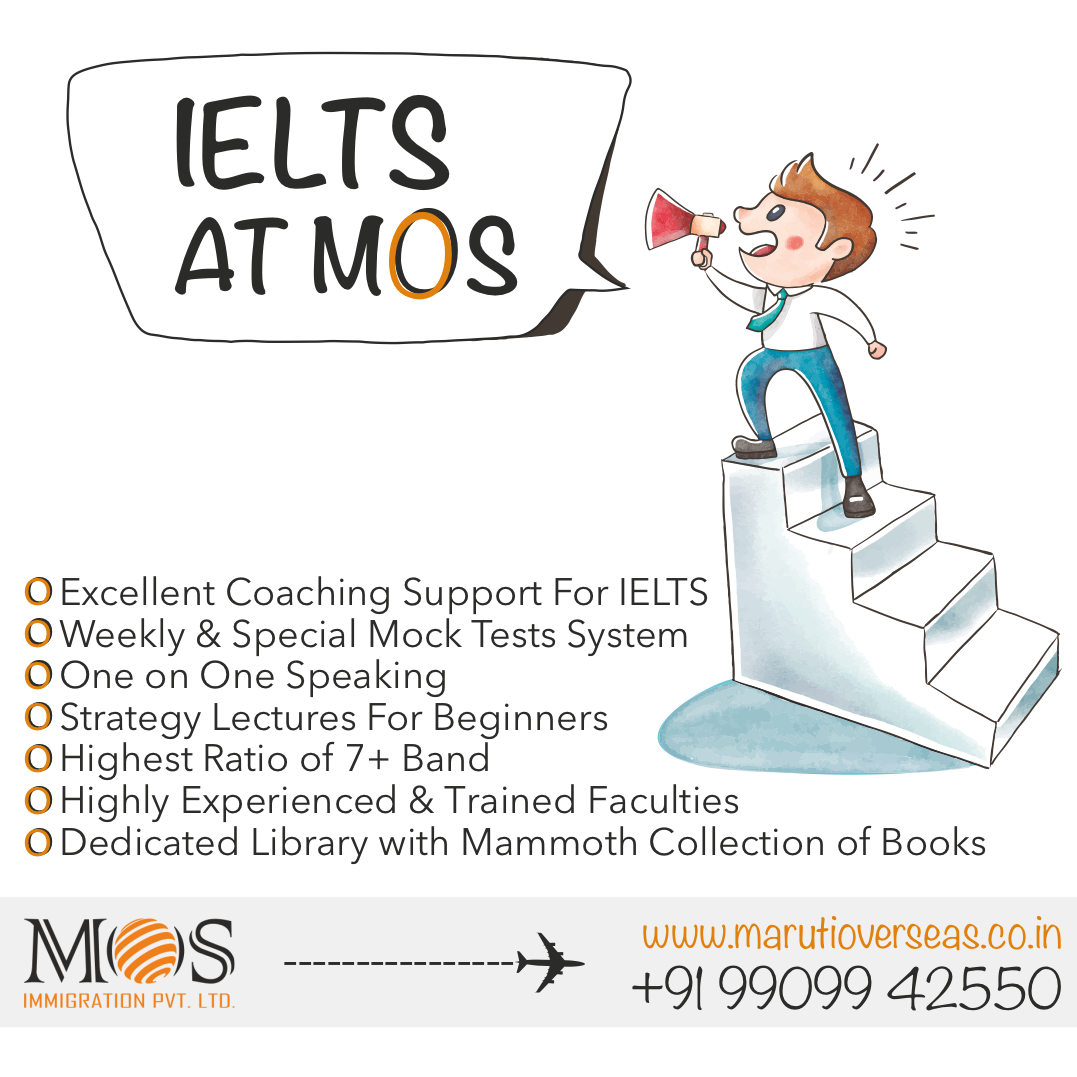 IELTS in Gandhinagar, IELTS coaching Gandhinagar to study abroad and visa consultants, Best Institute for IELTS in Gandhinagar for study abroad and best visa consultants Gandhinagar. Get the right kind of training from the best IELTS coaching in Gandhinagar at Maruti Overseas. We are here for you to guide you the best and open doors in the right way for your goals of studying overseas in countries like USA, UK, Australia, Poland and more. Our professional and talented team is here to give you the right kind of grooming and training in English language and better communication and presentation skills. We provide our students with the best modules and ample tests and working on the weaknesses in the available span. Moreover, it is our passion and legacy of 9 years that we are carrying it forward as the best IELTS coaching in Gandhinagar.