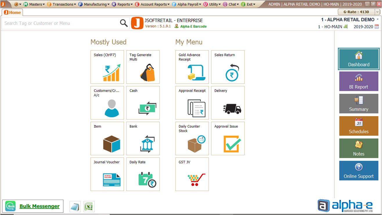 J-soft Extreme ERP software automates key business operations like POS, Inventory Management, Financial Accounting, Chain Store Management, Old Metal Management, Order Management, Minimum Stock Management, Customer Loyalty Program, Scheme Management, Karigar Management, Mobile Apps, Payroll Management, Business Intelligence, RFID Integration and Reporting powered by a wide range of features. J-soft Extreme ERP software can be seamlessly integrated into the business.