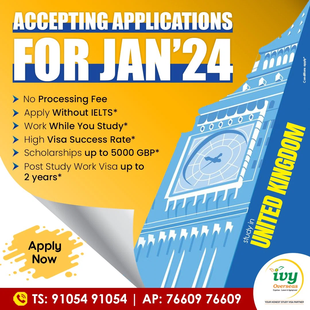 IVY Overseas is the "Best study in UK Consultants in Hyderabad". From selecting the right program to pre-CAS interview to visa filing, you will be offered nothing less than the best. Super fast processing and super efficient service. Study with internships, scholarships and post study upto 2 years*