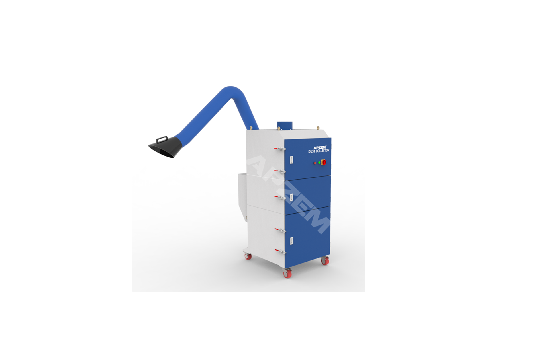 Apzem portable dust collectors are designed to capture finest dusts and fumes were ever you need it and when ever you need it. Portable dust collectors are self contained system with fully automatic pulse air cleaning arrangement and industrial grade castor wheel affixed at bottom for maximum portability and continuous usage for applications requiring complete portability and Productivity.